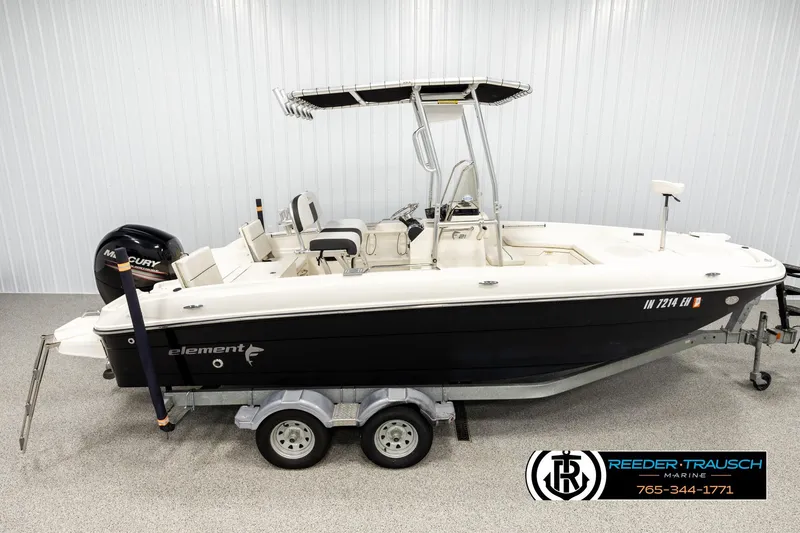The 2017 Bayliner Elements is a reliable 21-foot fishing boat, perfect for family or group outings, accommodating up to 10 passengers. Its 7.9-foot beam ensures plenty of room on board. Crafted from durable fiberglass, the black and white exterior gives it a modern look, ensuring longevity.