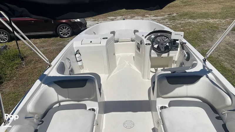 The bimini top provides shade and comfort for those sunny days on the water. Spacious deck layout with ample seating for family and friends.