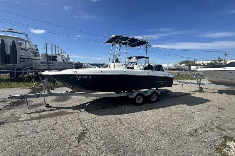 Introducing the 2018 Bayliner Element F21, a stunning center console boat that combines style and functionality. With an overall length of 21 feet, this vessel is designed for both leisure and adventure on the water. The deep vee hull, crafted from durable fiberglass, ensures a smooth and stable ride, perfect for navigating various water conditions. Powered by a robust Mercury 150 XL 4S outboard engine, this boat delivers an impressive 150 horsepower, making it ideal for thrilling outings or leisurely cruises. With only 185 hours of use, it promises reliability and performance for your aquatic adventures. The Element F21 features a thoughtfully designed layout, providing ample space for relaxation and enjoyment. Its modern design and practical features make it a fantastic choice for boaters seeking both comfort and performance. Experience the joy of boating with this exceptional Bayliner model.