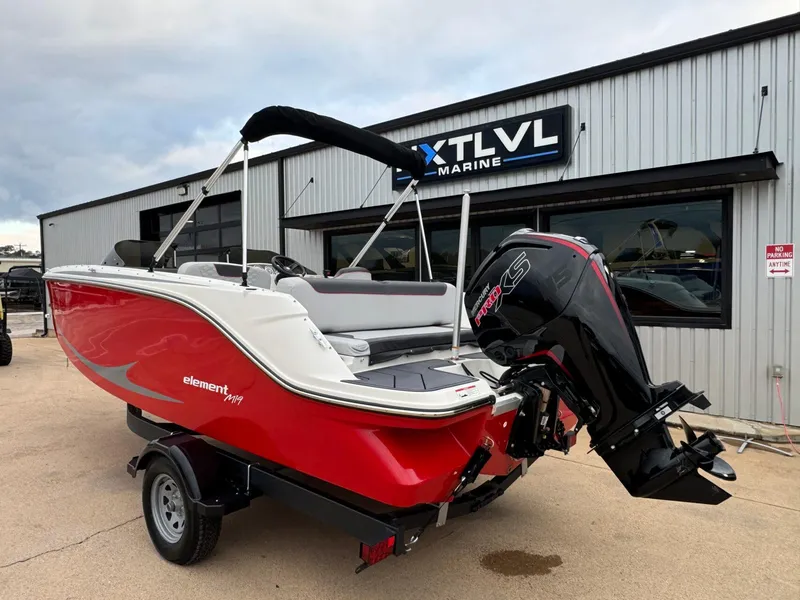 2023 Bayliner Element M19. A new, larger version of the evolutionary M-hull design. The M-hull design offers better load carrying capability as well as better stability and performance. This Bayliner Element M19 is powered by a Mercury 115 hp 4-Stroke engine ideal for watersports.