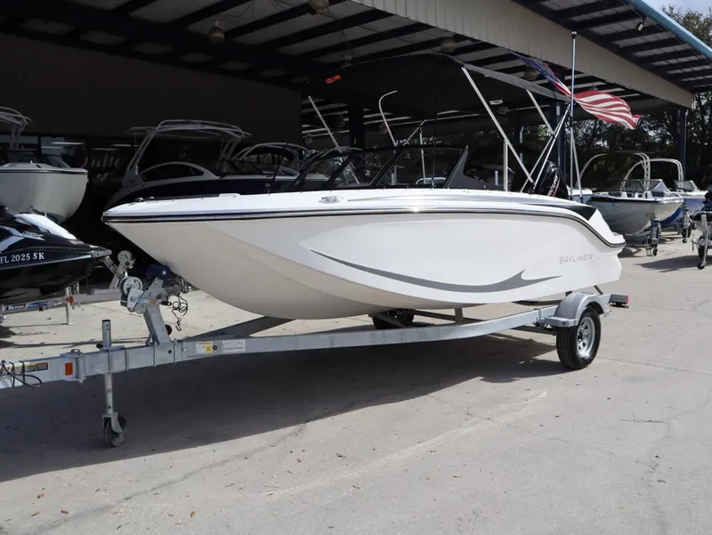 2025 Bayliner M Series M17, The 2025 Bayliner Element E17 is a user-friendly 17-foot boat designed for those looking to enjoy easy, hassle-free days on the water. Powered by a reliable Mercury 90HP 4-stroke engine, the E17 offers a smooth ride, efficient fuel economy, and just the right amount of power for cruising, fishing, and watersports. Its unique M-hull design provides excellent stability, making it an ideal choice for families, new boaters, and those looking for a reliable, low-maintenance boat. OPTIONAL FEATURES: Grey Interior w/Black AccentMX PackageM Comfort PackageSki Tow PylonDual Acrylic WindscreenCockpit FlooringGalvanized Trailer Key Features: • Mercury 90HP 4-Stroke Engine: The E17 comes with a Mercury 90HP 4-stroke engine, known for its quiet operation and fuel efficiency. This engine offers the perfect balance of power and economy, ensuring a comfortable and capable ride for various on-water activities. • M-Hull Design: Bayliner's exclusive M-hull design provides enhanced stability and helps prevent rocking, making the E17 exceptionally steady even in choppy waters. This innovative hull design also delivers a smooth, comfortable ride, adding to the boat's overall ease of use. • Seating for 7 Passengers: With seating for up to 7 passengers, the E17 offers ample space for family and friends. The open deck layout provides comfortable bow seating, a helm seat, and a large aft bench, ensuring everyone has a great spot to relax. • Easy-to-Use Helm Station: The simple, intuitive helm design includes straightforward controls and gauges, making the E17 a perfect choice for new boaters. The helm seat features comfortable padding, and an optional Bimini top can provide shade on sunny days. • Versatile Layout: The E17 is designed for versatility, whether you're fishing, cruising, or enjoying watersports. The boat includes integrated cup holders, multiple storage compartments for gear, and an optional removable bow fishing seat for added functionality. • Swim Platform with Ladder: The E17 includes a convenient swim platform with an integrated boarding ladder, perfect for swimming and water access. The non-slip platform surface ensures safe entry and exit from the water. Specifications: • Length: 17'0" • Beam: 7'5" • Fuel Capacity: 18 gallons • Weight: 2,000 lbs • Passenger Capacity: 7 Highlights: • Mercury 90HP 4-Stroke Engine for Efficient Power • Bayliner's M-Hull Design for Stability and Comfort • Spacious Layout with Seating for 7 Passengers • Intuitive Helm Station for Easy Operation • Swim Platform with Integrated Ladder for Water Access • Multiple Storage Options and Optional Bow Fishing Seat The 2025 Bayliner Element E17 is the ideal boat for families and new boaters who want reliable performance, easy handling, and comfort in a compact, versatile package. Whether it's for fishing, relaxing, or enjoying watersports, the ...