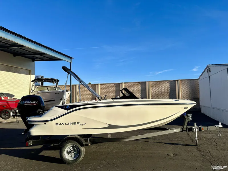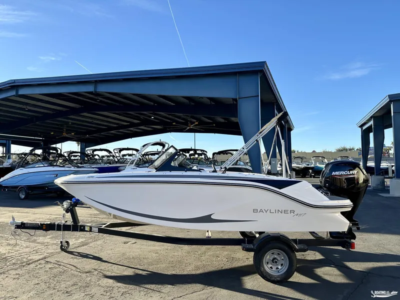 The 2025 Bayliner M17 is a compact, versatile bowrider designed for family fun and watersports. At 17 feet, it's perfect for smaller lakes or coastal adventures, comfortably seating up to 7 people. Powered by a reliable 90 HP outboard engine, it offers smooth performance and efficiency, making it ideal for cruising, tubing, or wakeboarding. The M17 features an open cockpit design with ample storage, including compartments for water toys and gear. The boat's shallow draft and easy handling make it simple to maneuver, even for first-time boaters. Ideal for those seeking an affordable, easy-to-maneuver boat, stop by our showroom on Boulder Highway in Las Vegas, Nevada to see it in person today and start your next adventure on the water!