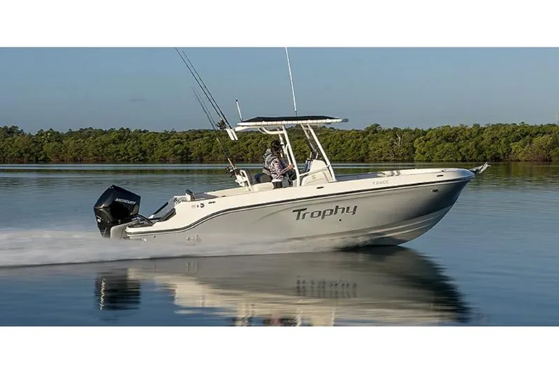 The newest addition to the Trophy series innovation expands our center console capabilities with increased fuel capacity, rugged fishability, increased storage and amplified cruising comfort adding up to incredible value. Built on a deep V-hull foundation, the T24CC accommodates up to 12 people on board, making this the perfect family fishing boat for inshore and coastal angling as well as entertaining. Discover the same user-friendliness and convenience features found in other Bayliner models in addition to new options designed to give you greater confidence in all your pursuits.