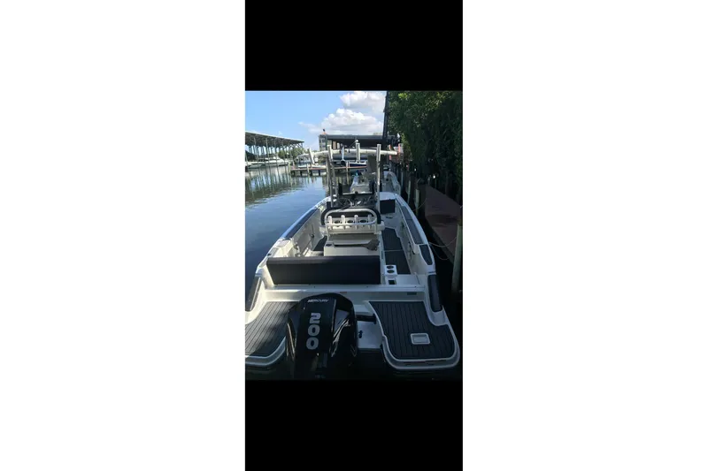 This center console Trophy is very clean with lots or upgrades. She is powered by a Mercury 200HP motor with fly-by-wire controls and approximately 150 hours of use. There are trim tabs and an upgraded steering system and steering wheel. Has Simrad combo GPS/fish finder, baitwell, tackle station, extra rod holders and a power pole. There is a helm cover and full boat cover. Includes a road trailer with new tires and spare wheel. Listing shows some stock pictures; additional photos to come.