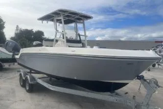 The 2022 Trophy T-22 is a versatile center console designed to keep pace with both serious anglers and active families. Powered by a dependable Mercury engine, this boat gets on plane quickly and delivers smooth, stable performance offshore or cruising the intracoastal. The smart layout features a spacious bow that easily converts from a large casting deck to comfortable seating, complemented by a fold-down aft bench. Anglers will appreciate the self-bailing cockpit, non-skid decking, high freeboard for safety, insulated fish boxes, a 15-gallon livewell, and ample rod storage, ensuring a productive day on the water. For longer outings, the enclosed head adds convenience. Easy to trailer and maintain, this T-22 balances performance and comfort, making it a capable all-arounder ready for any weekend adventure.