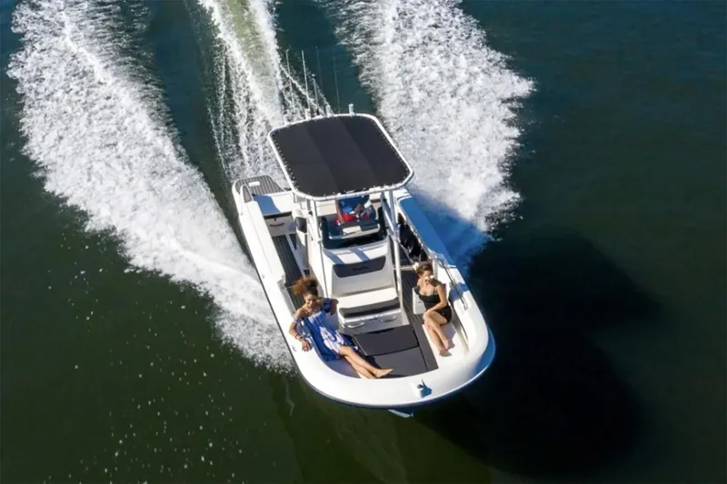 The T22 offers the perfect balance of fishing adventure and cruising comfort. Highlights include a deep V-hull a broad bow for casting or lounging comfortable aft bench seat livewells plus a dry-riding interior ensures an enjoyable ride to your favorite fishing spot or waterfront restaurant. Anglers and non-anglers alike appreciate the easy cleanup of the self-bailing cockpit and the convenience of an enclosed head compartment at the center console. Optional equipment like a ski tow pylon make the T22 even more versatile.