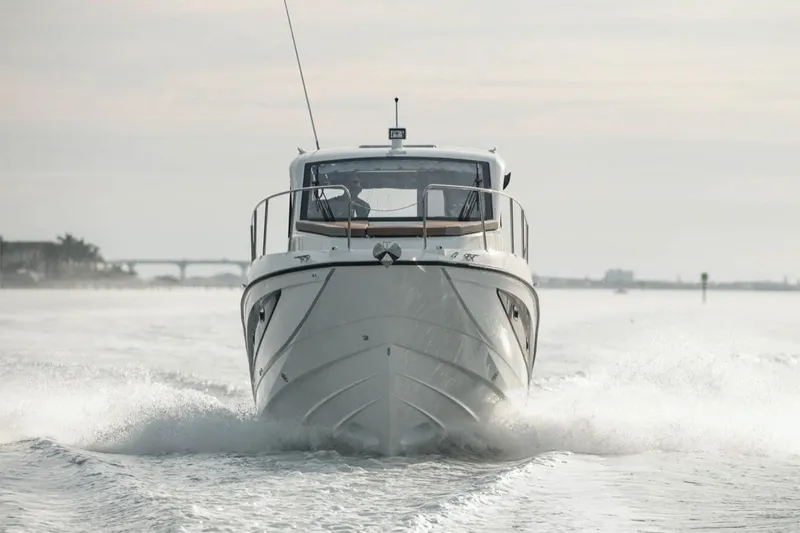 The Trophy T29 Explorer is our largest, most elegant model yet, brimming with safety, comfort, style and power. Whether you're venturing offshore, exploring winding rivers, or cruising your favorite lakes, this premium boat offers unmatched versatility. Its deep-V hull ensures a smooth, stable ride in challenging conditions, while the enclosed pilothouse provides protection from the elements without sacrificing panoramic views.