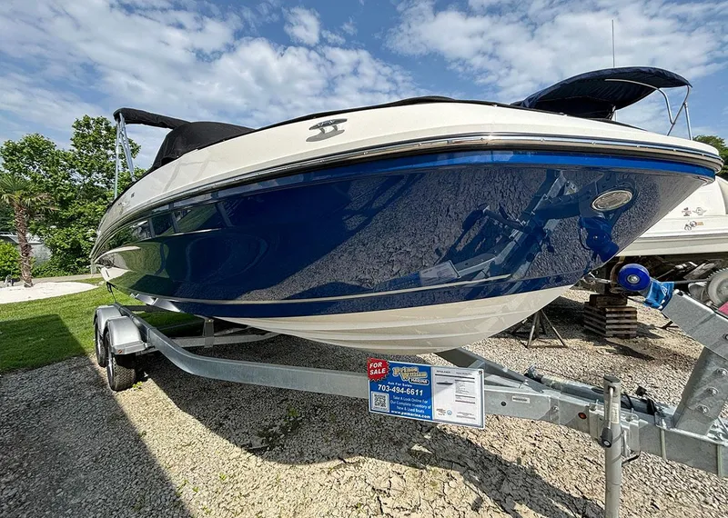 The 2024 Bayliner VR6 delivers sporty performance, modern styling, and practical versatility in a well-balanced 22'7" bowrider. Finished in blue hull sides with a white bottom and boot stripe, this model pairs sharp exterior lines with a VR Series Graphite interior for a clean, contemporary look. Powered by a 250HP MerCruiser 4.5L MPI Alpha stern drive, it offers strong acceleration, smooth handling, and reliable power for cruising and watersports.