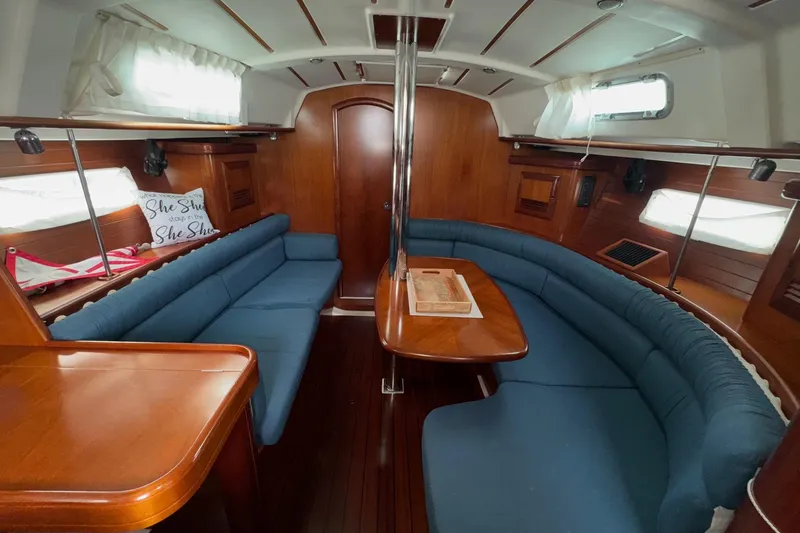 The Beneteau 361’s interior feels much larger inside than your average 36' boat thanks to its smart layout and generous beam. Wruff Life features warm, Cherry wood joinery, plenty of natural light, excellent ventilation, and a comfortable salon ideal for weekends aboard or extended cruising.