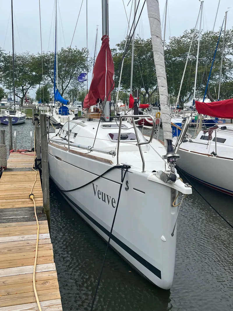 Veuve is a fresh water, Beneteau First 30. Designed by Juan K, she is a wonderful combination of comfort and performance. Tiller steering, twin rudders and a hull design were directly inspired by Volvo Ocean Racers. This boat is remarkably fast and highly maneuverable. Although she looks like a thoroughbred race boat, the interior has all the luxurious features of the Beneteau brand. There are two private staterooms, an enclosed head with shower, over six feet of headroom in the salon, a full galley and nav station, and plenty of storage space. If you are a sailor who likes to go fast and enjoy luxurious accommodations, this vessel is for you.