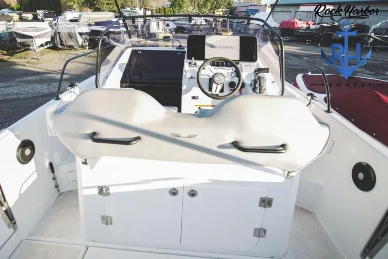 Exterior Design: The Flyer 8 SUNdeck boasts modern, attractive lines; which are accentuated by black railings. Developed on the latest generation of outboard hulls equipped with Air Step 2, the boat gets on plane quickly and offers outstanding cruising comfort. The aft bench seat easily converts to a sunpad. There are also lots of ergonomic storage spaces spread throughout the boat.