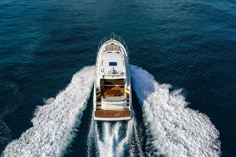 This is the three (3) stateroom version, and super loaded! INCLUDING full electronics package, FLIR, ice maker, generator, aft deck custom grill, swim platform chocks, cockpit IPS Joystick control, hydraulic swim platform, dinghy garage, and low hours on her twin Volvo Penta D6 IPS 600's, propelling her at a maximum speed of 30 knots.
