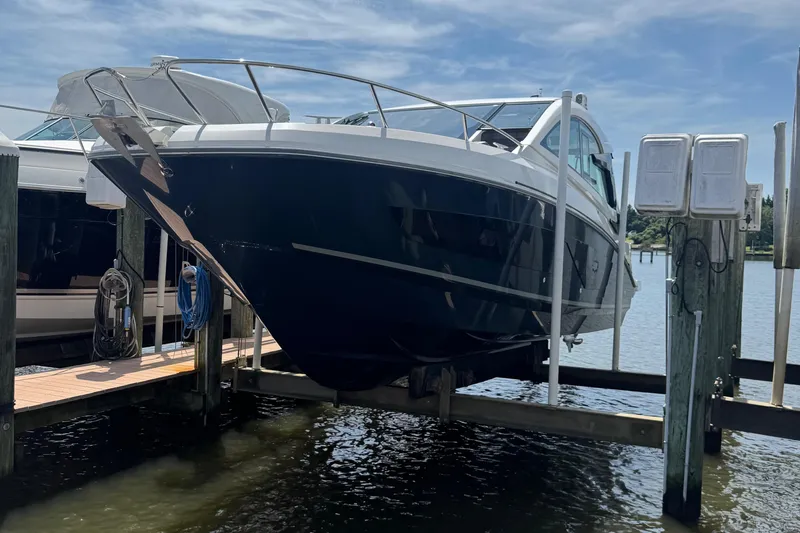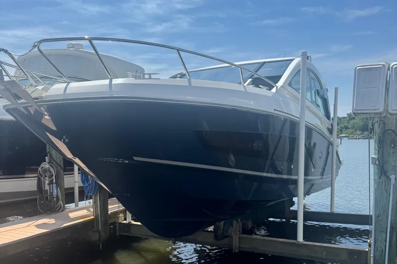 Lift-kept since day one and meticulously maintained by its original owner, this express cruiser has just 100 hours on her twin Mercury 300s. Outfitted with Joystick control, Axius system, and AutoPilot, she offers effortless handling and precision docking, making her equally ideal for seasoned boaters and newcomers alike.