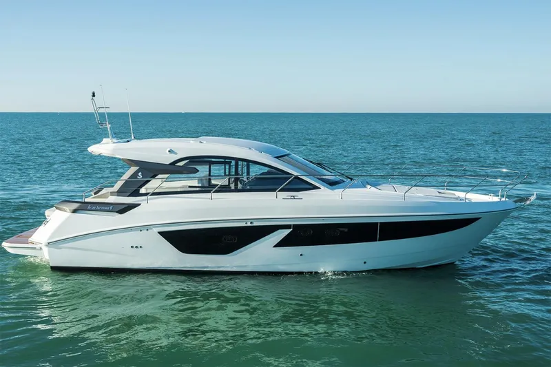 The Gran Turismo 41 is the latest model to join BENETEAU's express cruiser line, and she presents herself as the ultimate powerplay for those looking to dominate the water in style. Adventurous and spacious, she combines sport and relaxation to master a fresh new model where limits simply do not exist. Whether its her boast-worthy speed, sharp head-turning lines, or her many inviting social spaces, this feature-rich cruiser offers endless opportunities for entertainment and enjoyment on the water.
