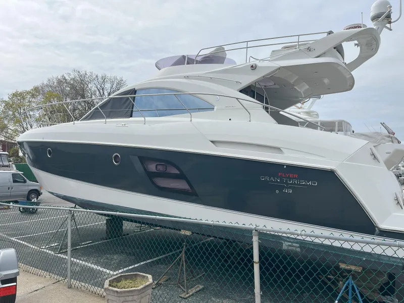 The Gran Turismo 49 Fly is a sport cruiser with a flybridge. Her bold silhouette is equivocally matched to her comfortable interior. Spacious and skillfully designed, she welcomes all friends and family aboard.
