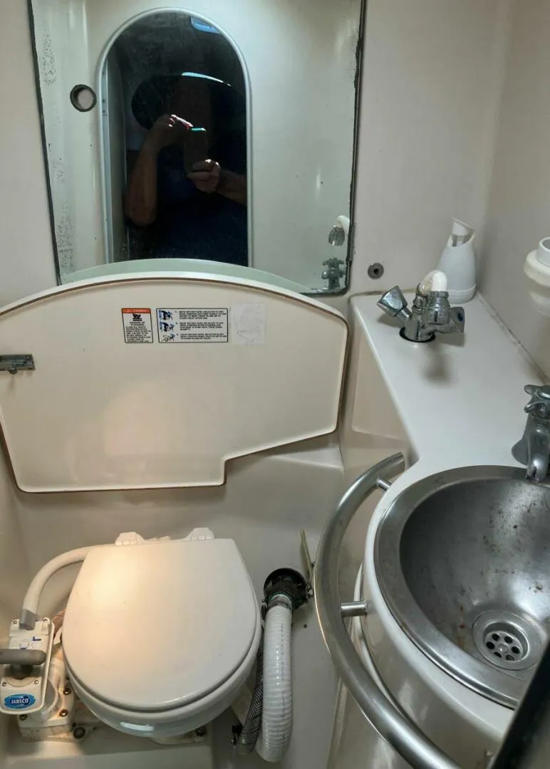 The galley is to port of the companionway with a double SS sink, storage, stove with oven and plenty of countertop space.The aft cabin is behind the galley - with a large double berth and plenty of storage. To starboard is a large aft head with a vanity and shower. Forward of the head is a large contertop/chart table which houses the 12 volt freezer and refrigerator beneath it. Behind the countertop/chart table is the electrical panel. The salon consists of two straight settees with a centrally positioned table that has leaves that open up and extend to each settee. There is plenty of storage outboard and below the settees. The forward cabin has a v-berth in the bow. The hanging locker and storage locker is to starboard opposite the forward head. The forward head consists of a manual toiltet, sink and shower compartment.