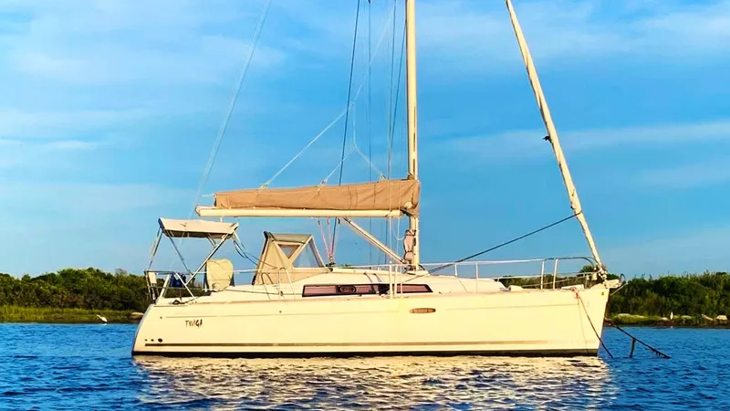 Video tour of this boat linked within this listing! This two-owner Oceanis 31, Twiga, has been mostly day-sailed by its current owner of 9 seasons. Standout features include: Shallow draft keel; Classic Mainsail with stackpack; Air conditioning (unused for 9 years); Asymmetrical spinnaker; Fairclough custom winter cover with steel frames; Unfinished exterior teak; Dodger, bimini, cockpit cushions, stackpack and companionway cover all in grey. Original Raymarine electronics package includes Wind, Speed, Depth and Autopilot. Standalone GPS chartplotter included. The interior is in very good condition with one of the cleanest bilges I've ever seen. No indications of any groundings on the keel and interior structural grid. The Neil Pryde mainsail & Roller furling genoa are original.