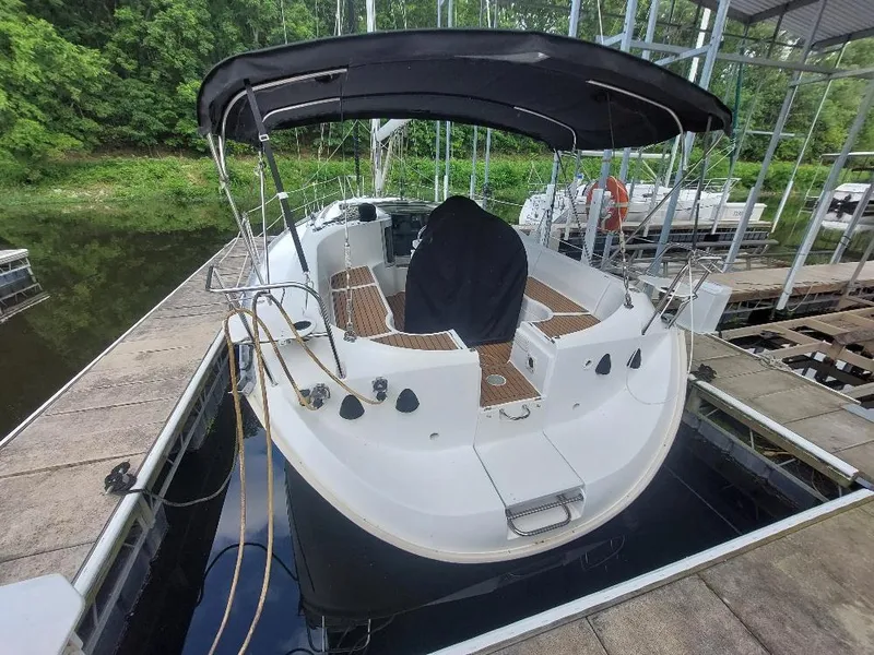 This Inmast furling Beneteau 351 carries its strong 12'5" beam well aft and, not unlike current designs, incorporates the aft dimension to yield a big cockpit and roomy aft double berth. Priced to sell as to replace this boat would be in the 250k to 280k range (most depreciation already taken) she is currently on the Tennessee River in North Alabama.