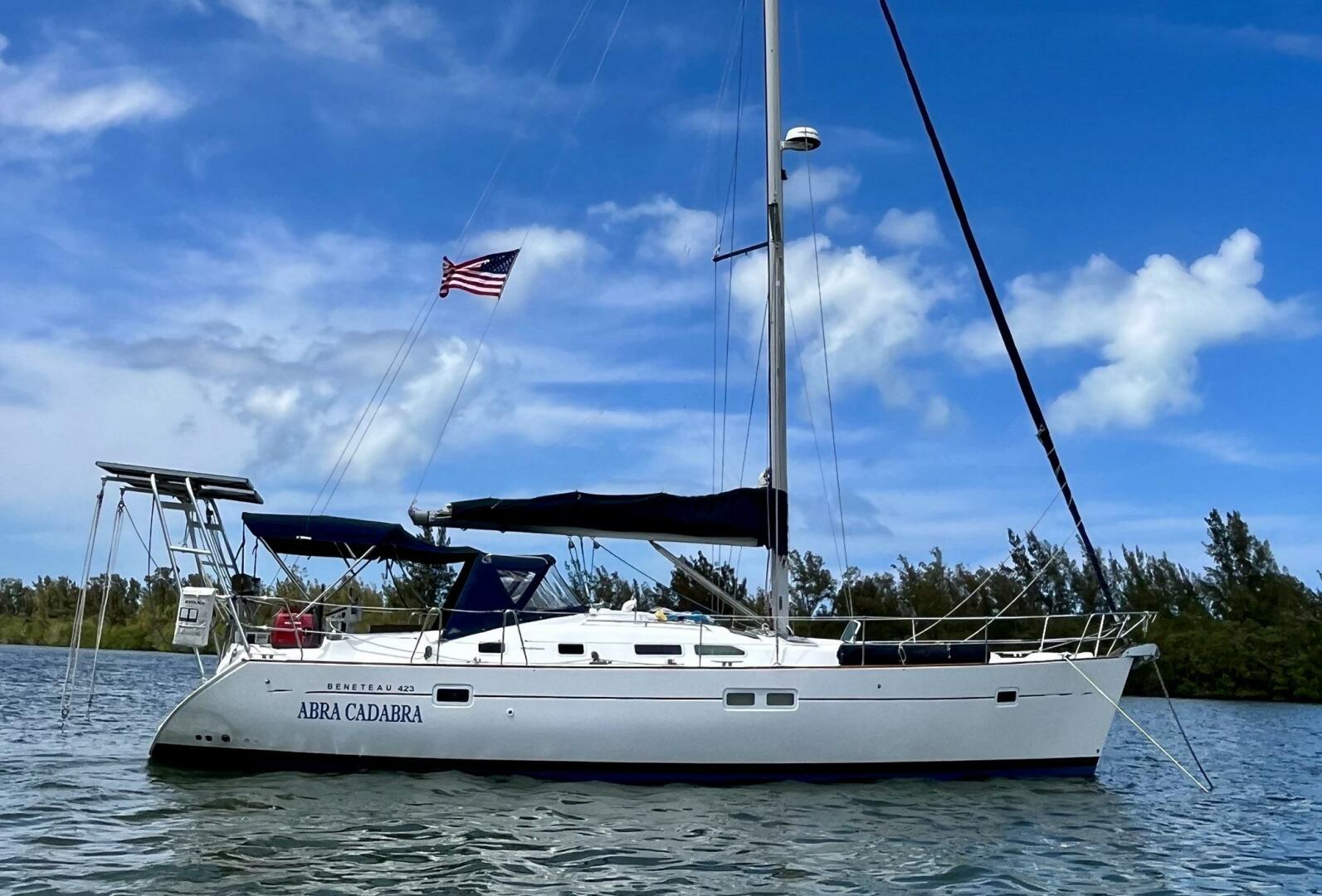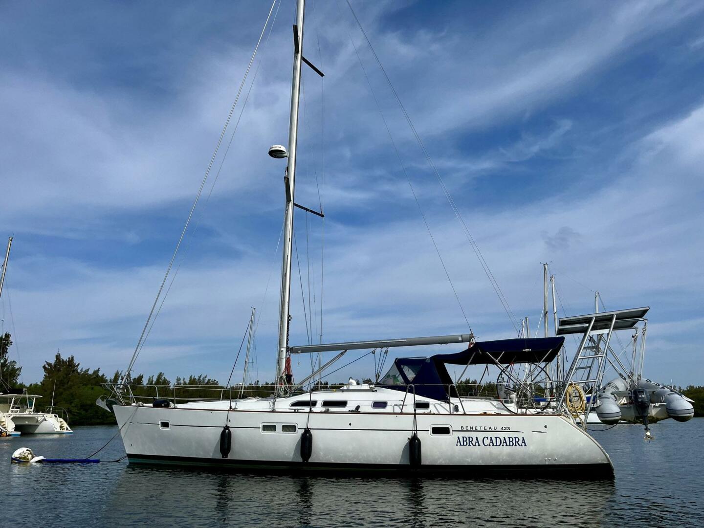 The Beneteau Oceanis 423 is a high-performance cruiser with a spacious air conditioned cabin for living aboard. You will relax in one of (2) private staterooms that are comfortable for your guests with 2 separate en-suite heads having no need to share. It's fin keel with bulb ballasted bottom provides great stability at sea while maintaining a shallow draft to explore your favorite tropical anchorages. The skipper will appreciate the response at the wheel with its oversized rudder. The boat can easily be single handed having all sheets and halyards controlled from the cockpit. Abra Cadabra includes new sails purchased in 2024. It comes with a Highfield Dinghy and 9.9 hp Yamaha on the davits (New in 2019).