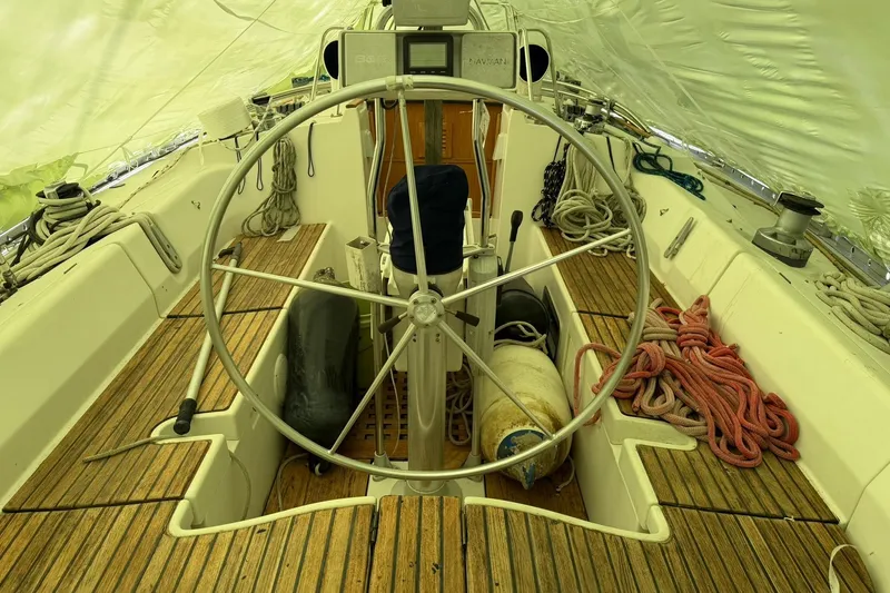 On deck, her wide beam translates into a spacious cockpit with easy access to all sail controls, making her manageable for short-handed sailing. The solid fiberglass hull and stable fin keel design deliver a smooth, confidence-inspiring ride whether you're coastal cruising or enjoying a weekend harbor hop. With a reputation for reliability and comfort, the Oceanis 430 strikes an ideal balance between sailing performance and onboard livability.