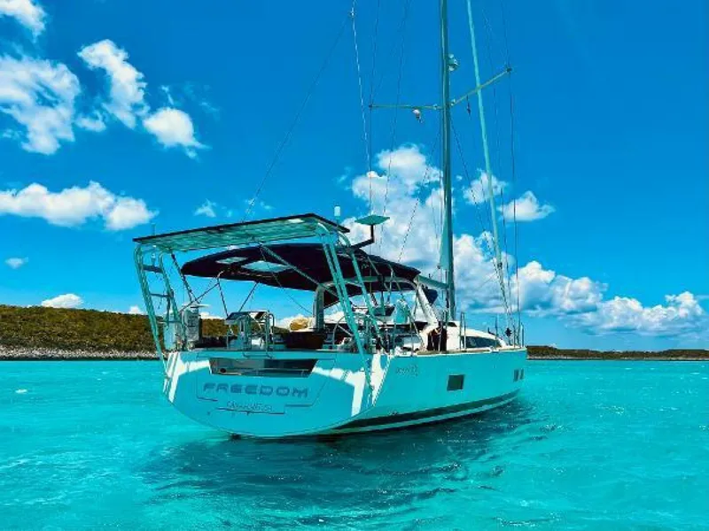 Freedom is by far the most well kept and appointed sailing vessel to hit the market!!! With 3 luxurious staterooms all with ensuite heads, Freedom is comfortable for both owners and her guests. With a beam over 16 feet, she has a very large salon and galley for entertaining or just relaxing. Freedom is completely set up for long-range cruising and with a shoal keel, she is the ideal sailboat for the Bahamas, Keys, and Caribbean. Freedom is owned by experienced sailors who sailed her from Southern California through the Panama Canal to Florida just last year. She has a 1000-pound rated arch that boasts 820 watts of solar and Lithium Iron Phosphate house batteries for plenty of power. The Yanmar 4JH80 engine with three 53-gallon fuel tanks has a 1000-mile motoring range at her cruise speed. Additionally, she has a Code 0 and 3A asymmetrical spinnakers and a staysail combined with her tri-radial laminate main and jib that allows Freedom to make tracks under sail. The 15-gallon per hour AC & DC powered watermaker fills both 60-gallon fresh water storage tanks so there is plenty of water for extended voyages.