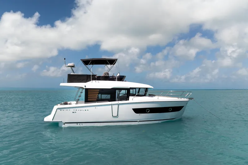The 2026 BENETEAU Swift Trawler 37 Fly delivers the unmistakable Swift Trawler promise-efficient cruising, confident handling, and welcoming spaces- in a size that's approachable, versatile, and easy to manage. Designed for owners who want to maximize time on the water with friends and guests, the 37 Fly blends modern style with proven passagemaking DNA.