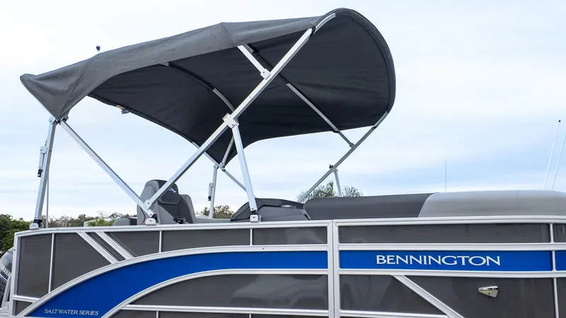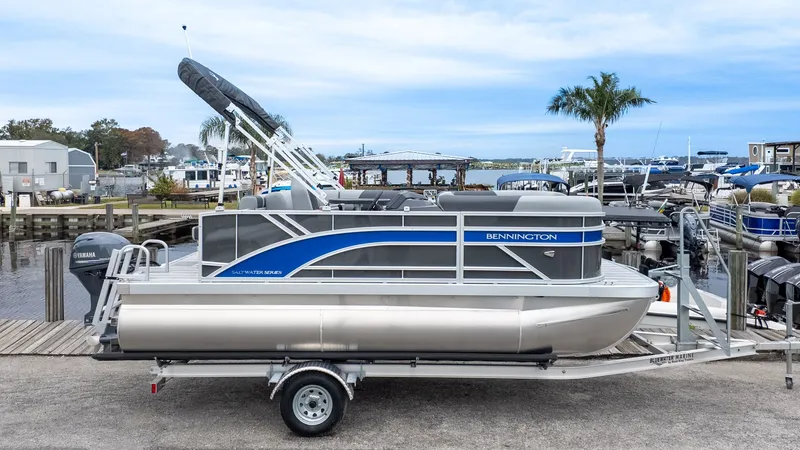 Imagine an afternoon cruise: your small crew of six is spread out, relaxing on the plush Serene Soft Touch furniture. The L-Bench and the forward-facing bow chaise lounges are prime real estate for sun worshippers. With the included Premium Rockford Fosgate Audio® system filling the deck with your favorite tunes, the vibe is set for pure relaxation. When you find the perfect cove, the deep-step stern boarding ladder makes hopping in and out of the water a breeze. Powering your adventure is the smooth, reliable Yamaha 40 HP Four Stroke EFI outboard, delivering just the right amount of zip for a relaxing tour of the shoreline. The Quick Release Bimini top stands ready to provide shade, turning any sunny day into a perfect day. This is Bennington quality crafted for your small-water paradise.