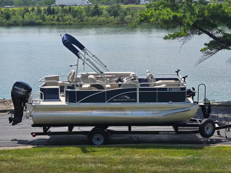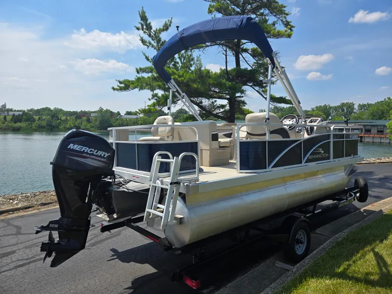 2019 Bennington 188 SFV comes with: 50 h.p. Mercury ELPT CT with Only 142 Hours, Swim Deck w/ Ladder, Bimini Top, 2 Front and 1 Rear Fish chair, Front/Rear Livewells, Minn Kota Power Drive Trolling Motor, Cocktail Table, Trailer, and more.