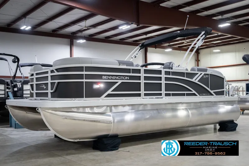The 2026 Bennington 20 SSB is a new pontoon boat designed for leisure and comfort. This 20-foot vessel features a sleek matte black finish and is crafted from durable aluminum hull material, ensuring longevity and resilience against water conditions. With a beam of 8'6", the boat provides ample space for passengers to enjoy a spacious and relaxing environment.Equipped with a 35-horsepower Mercury outboard engine, the boat is powered by electric fuel, offering an eco-friendly option for boating enthusiasts. The propulsion system provides reliable performance for calm and enjoyable rides on the water.Currently in stock and ready for new owners, the Bennington 20 SSB promises a combination of style, functionality, and environmental consideration. Whether planning a relaxing day on the lake or exploring waterways, this pontoon is an excellent choice.