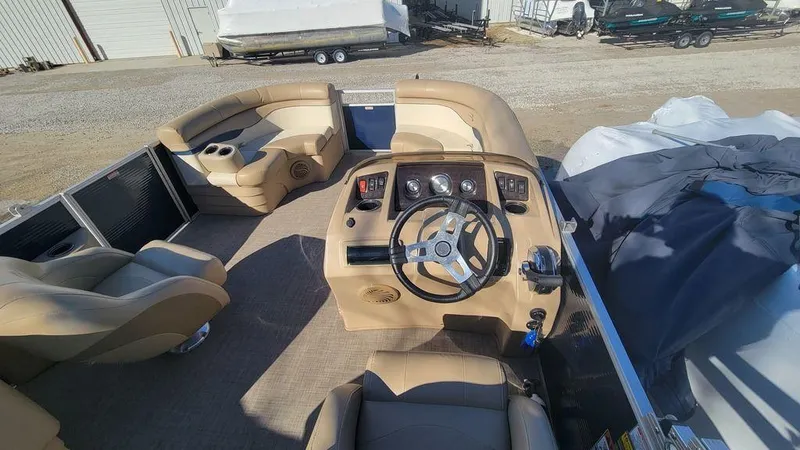 Sporty Performance: Equipped with a reliable outboard motor, this model delivers good speed and handling for a pontoon, suitable for water sports and cruising.