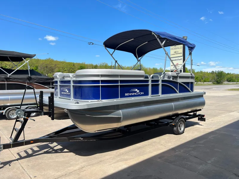 COME JOIN THE FAMILY - LOW, NO HAGGLE PRICING WITH TRAILER 2024 BENNINGTON 20 SVSR POWERED BY YAMAHA F90LB / ALUMINUM PROP / MONACO BLUE W/ SILVER SIMTEX INTERIOR WITH MONACO BLUE DIAMONTE ACCENT / 25" TUBE(S) / RECLINING HELM SEAT / ZEBRAWOOD SLATE TRIM / GARMIN STRIKER 4 FISH/DEPTH FINDER / SILVER BAMBOO FULL FLOORING / (2) PORTABLE CUP HOLDER / ROSSA RED CANVAS FOR BIMINI TOP & MOORING COVER WITH QUICK RELEASE CLIPS / SINGLE AXLE TRAILER / CONTACT: CLINT IN MCALESTER @ 918-423-8848