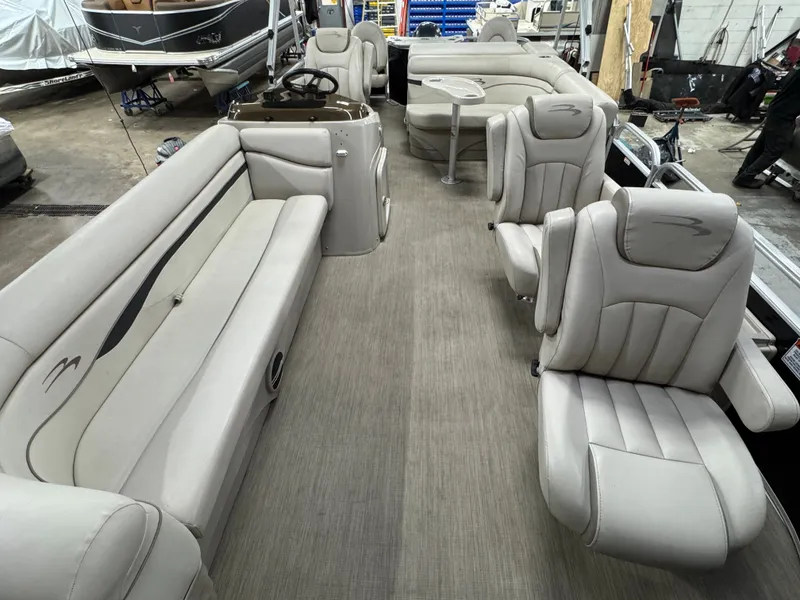 2017 Bennington 22 SS Pontoon & 90HP Yamaha 4-Stroke. This unique layout Fish & Cruise pontoon features a rear fish layout along with a DL (Dual Lounge chair) layout. Up front are a long couch along the starboard side with the DL chairs along the port side. The Dual Lounge chairs a high back sport style seats with swivel, slide and recline functions along with fold up arm rests. There is a mini console between the lounge chairs with an item tray, 3 cup holders and a stereo speaker. The helm features a Tachometer, Fuel and Trim gauge. There is a Kicker KMC1 Bluetooth audio stereo system with additional USB and auxiliary inputs. There is a Garmin GPS depth/fish finder mounted in the helm. On the port side of the vessel there is a L-shaped couch with table and a sun deck. The sun deck flips up to reveal a large storage compartment with a side access door as well. There is a fishing rod storage compartment along the starboard side fence rail behind the captain's chair. At the rear are 2 fold down fishing seats with a large console between them. The console has a livewell, 3 cup holders, 2 rod holders and brackets for 4 fishing rods (2 per side). There is a mini console on the port side in the corner with another cup holder. The starboard side rear entry gate leads out to a swim platform and fold down swim ladder. This Pontoon is rated for 10 people Warranty Is Included In Sale Trailer Not Included But Available For Use Or Purchase $26,995 Boat World 21155 Highway 65 NE East Bethel, MN 55011 For More Used And New Pontoons Visit Us @ BoatWorldMN.com [https:\\www.boatworldmn.com] or Call (763)434-9655
