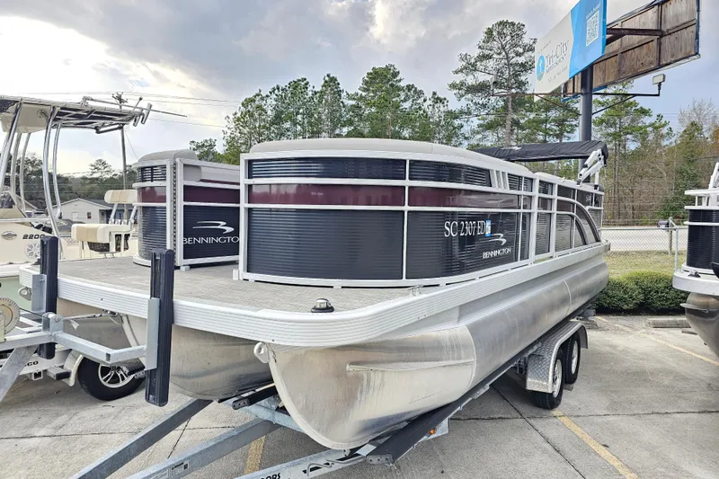 This Midnight Black / Sunset Red Bennington 21 SXL has a YAMAHA F150XB outboard motor.