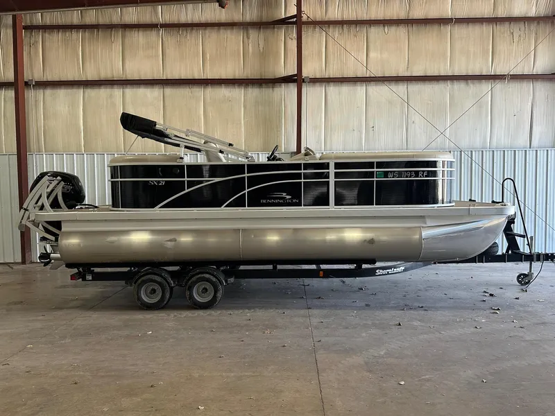 This 2018 Bennington 21SSRCX is in great shape. Boat is a local trade. Boat is black in color with beige interior. Great family boat. Boat has Kicker stereo, Garmin depth finder and seating for 10. Boat is powered by a Mercury 115 Pro XS with only 174 hours on it. Boat also comes with a 2019 Shore Land'r tandem axle bunk trailer. Come check it out!