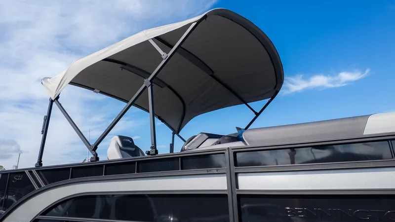 Style and detail aren't overlooked either. From its Gemini Black panels accented in metallic silver to shoreline grey flooring underfoot, it carries the modern, refined look that Bennington is known for. Add in features like Rockford Fosgate sound, a sleek Lacolla steering wheel, and convenient wireless charging, and you've got the perfect mix of luxury and functionality.