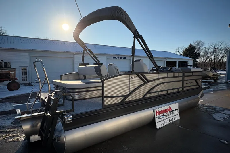 This is a 2026 Bennington 22 SSB S Swingback that is powered by a Mercury 150 4 Stroke. This boat is Metallic Silver in color with Impulse Mineral Vinyl Floor, Leon Light Silver Interior with Slate Simtex Accents. We have our stock boat equipped with the following options: SPS Package (3 x 25" Pontoons, Under Deck Wave Shield, Lifting Strakes On Inside of Pontoons, and 33 Gallon Fuel Tank), Blackout Luxe Package, Wireless Phone Charger, and Ski Tow Bar. The boat comes standard with a Bennington Playpen Cover and 8.5' x 10' Bimini Top.