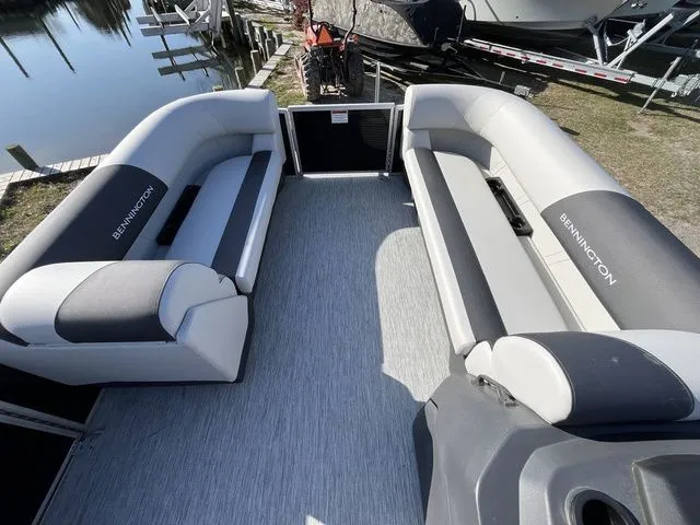 2026 Bennington 22 SFC, Call or text Manteo Marine, your Bennington Pontoons dealer for the OBX 252-473-2197. Available 2026 Bennington 22SFC with Yamaha F150XD, Gemini Black panel, Mineral Gray flooring, Bimini top, Mooring cover, Ski Pylon, Magic Tilt trailer and much more.