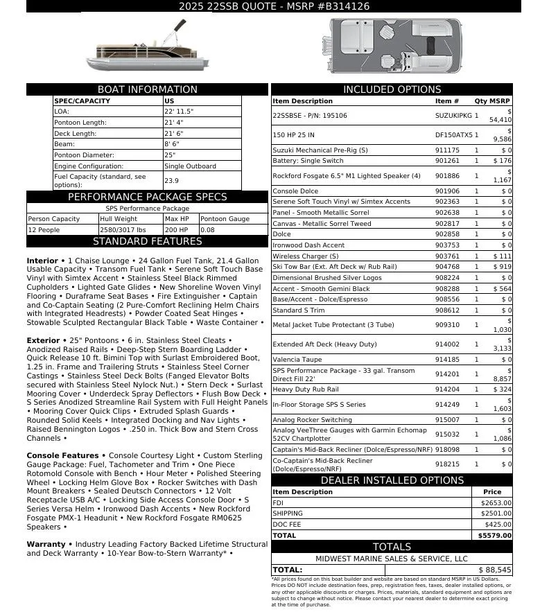 2026 Bennington 22 SSB Base