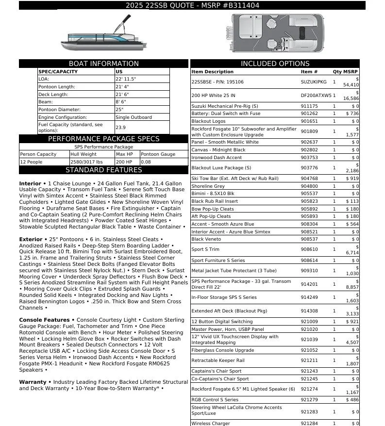 Overview from around the web 2026 Bennington 22 SSB Sport