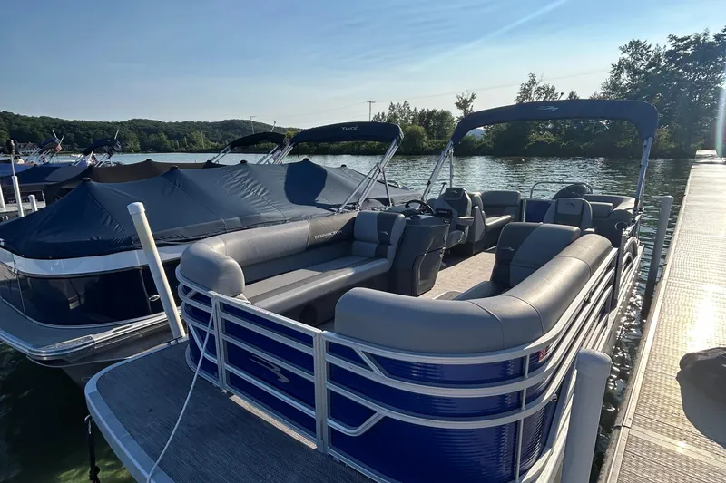 The 2024 Bennington 22 SSR, is a remarkable tritoon that perfectly blends style and performance. Overall length of 22.17 feet, powered by a Yamaha 150hp 4 stroke with hydraulic steering. This used vessel is crafted from durable aluminum, ensuring longevity and resilience on the water. The Bennington 22 SSR promises exhilarating rides and smooth cruising experiences. Its thoughtful design includes features that enhance comfort and convenience, making it an ideal choice for leisurely outings with family and friends. Whether you're enjoying a day on the lake or hosting a gathering, this tritoon offers ample space for relaxation and entertainment. The combination of its sleek design and powerful performance makes the Bennington 22 SSR a standout choice for boating enthusiasts. Embrace the joy of the water with this exceptional vessel, ready to create unforgettable memories.