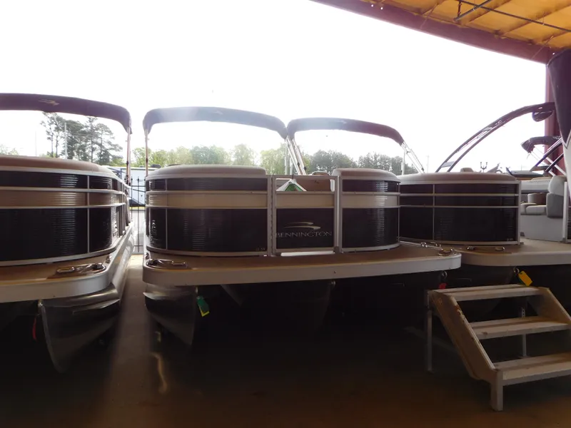 This in stock 2023 Bennington 22 SX Swingback is o0ffered with a Yamaha F150XB engine and is loaded with options: Panel Color Smokey Granite Accent Panel Metallic White Canvas Smokey Granite Base Vinyl Silver Simtex Logo Std Dimen Brshd Silver SX Trim Accent Zebrawood Slate Matte Seagrass Silver Flooring Cupholder W/Pocket Silver Glove Box Graph Fish Striker 4 Kicker Spk Blue LIghted 4 Interior Accent Arctic Ice White Dmnt Base Furniture SX Series Cupholder Portable RL Keeper SX High Back Recliner Upgrade SPS 22 S Trsm Fuel Del 84" FL Storage Infloor 25 Inch Battery Switch On/Off Del Non-Tilt Helm Add Sea Star PreRig Base Yamaha Mech Del Std Cleats Add SS Cleats Docking Lights Silver Upgrade Gate Glide Front Silver Gate Glide Port Silver Ski Tow Black Ext Platform