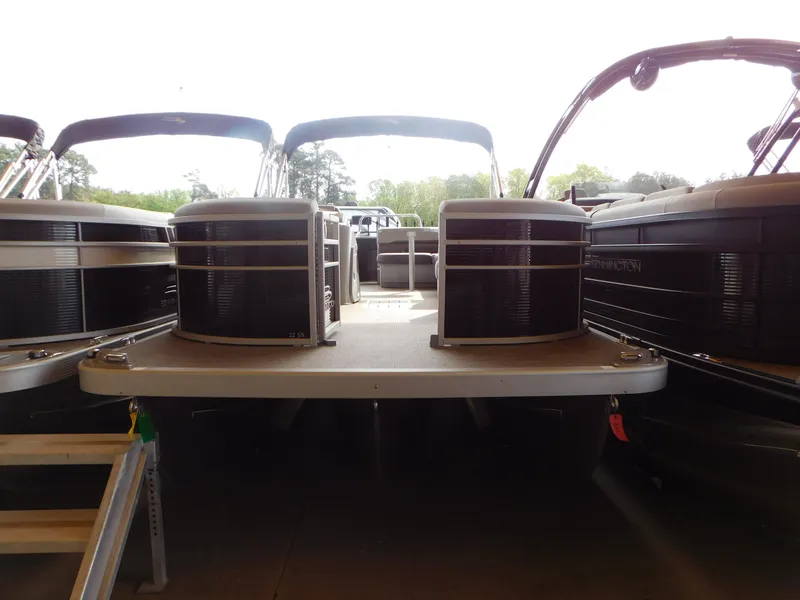 This in stock 2023 Bennington 23 SXL Tri-toon is offered with a Yamaha F150XB engine andis loaded with options: Optional Bear Custom Trailer is only $6,500. SPS 22 S Trsm Fuel Del 62" FL Storage Infloor 25 Inch Extended AFT Deck S Series PreRig Base Yamaha Mech Ski Tow Black Ext Platform Kicker Speaker Blue Lighted 4 Graph Fish Striker 4 Privacy Option Docking Lights Silver Upgrade Cupholder Portable SX High Back Recliner Upgrade Glove Box Silver Battery Switch On/Off Del Std Cleats Add SS Cleats Cupholder w/Pocket Silver Gate Glide Front Silver Gate Glide Port Silver Panel Color Midnight Black Canvas Black Base Vinyl Silver Simtex Logo Std Dimen Brshd Silver Trim Accent Zebrawood Slate Matte Bamboo Silver Flooring Int Accent Met Carbon Diamonte Base Furniture SX Series