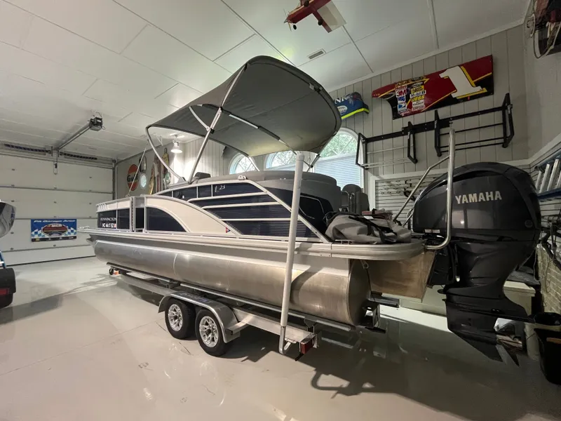Purchased new in 2023, this Bennington 23LTFB Bowrider with Quad Bench seating has lived in a heated/air conditioned garage most of it's life. When used in the summer in brackish water, she lives in a boathouse on a lift. It is SUPER clean, and has only 35 original hours. Sitting on an aluminum Magic Tilt trailer that has traveled less than 200 miles, you will be hard pressed to find a nicer tri-toon!