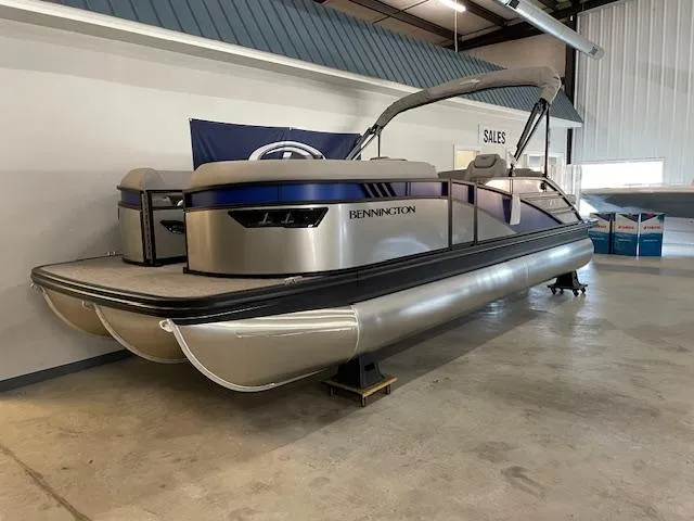 2024 Bennington 23LXSSB, Yamaha F200, Smooth Silver Panel with Satin Blue Accent, Metallic Silver Canvas, Blackout Package, Zebra Wood Trim Accent, Seagrass Silver Flooring, Co-Captain Seat, Pillow Top Diamond Stitched Seating, Dual Batteries with Switch, In Floor Storage, Yamaha Saltwater Package, 9" Garmin Electronics Package, Removable Ski Tow Bar, Stereo with Speakers, RGB Lighting Package. Backed by Bennington's 10-Year Bow to Stern Warranty! ***No Trailer Included***