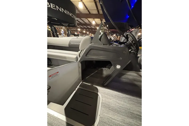 The 2026 Bennington 23 SSB SF combines premium comfort and modern convenience in a versatile 23-foot S-Series pontoon. Standard features include power-assist hydraulic steering, a lighted power Bimini, ski tow bar, Blackout Luxe rails, and full coverage Waveshield. Comfort and entertainment options include Rockford Fosgate® 6" lighted speakers, RGB exterior side and toekick lighting, high-back air recliner seating, USB charging stations, wireless phone charger, in-floor storage, and a 12" Vivid UX display with mapping and 12-button digital switching. The onboard dual battery system with switch and retractable keeper rail add functionality for days on the water.