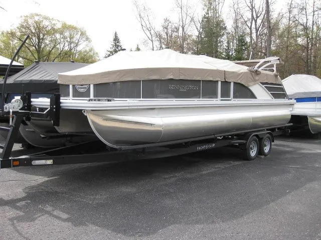 Features on this Bennington 23L Bowrider Fastback, with 250HP Yamaha outboard engine include: Power assist steering, exterior side lights, interior toe-kick lights, stainless steel dock-lights, pop-up cleats, heavy-duty rub-rail, dual battery switch, Sea-Star helm, Ottoman with cooler, Pure comfort recliners, Ski/Tow bar, stereo with RGB speakers, and beautiful embroidery package! Bennington 10 year warranty and lifetime structural hull warranty. Yamaha and control standard 3 year warranty. Custom mooring cover and safety package included with purchase. Trailer sold separately.