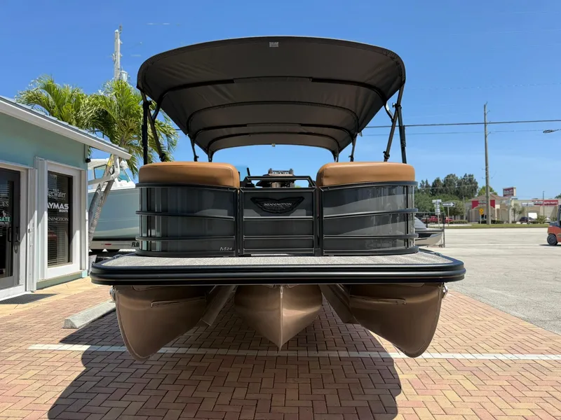 Brand new 2025 Bennington 24 MSB with Bennington's brand new Anthracite exterior color offering. This boat includes a blacked out exterior with smooth Anthracite panels along with Bennington's new Modesto brown Veneto M-Series Interior with Mythos Grey Accents throughout
