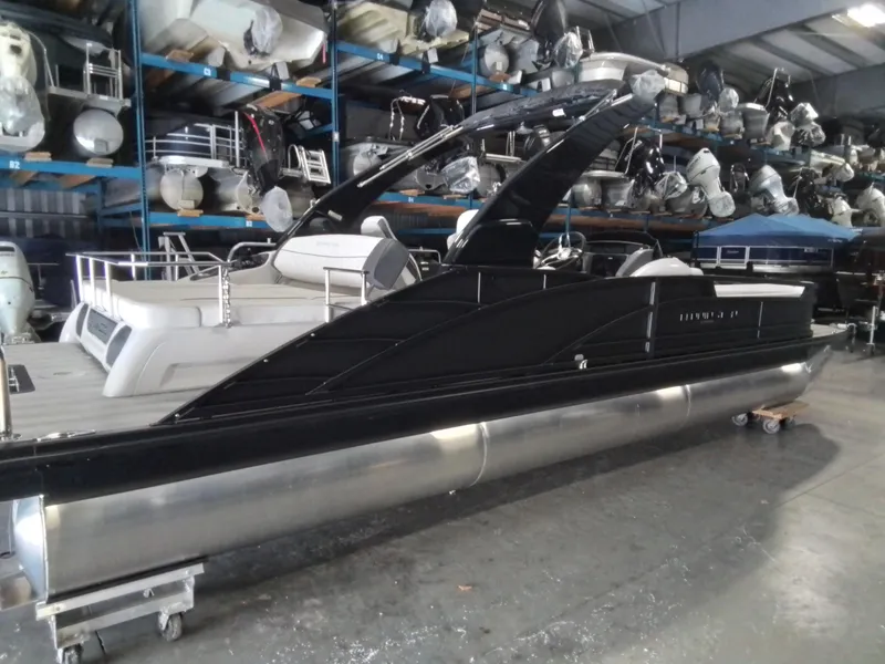 2025 Bennington Marine LLC 25RTSBASE, The Bennington R-Series Bowrider with a 300HP Verado engine and power arch combines stunning design with exceptional performance. Its flat black, sleek exterior and modern silhouette turn heads on the water. The power arch adds versatility and style, perfect for watersports and cruising. Effortless docking is made possible with integrated viewports and docking handles for clear views and added control. The step-down U-Lounge™ enhances socializing while improving the captain's view. Experience luxury, performance, and functionality in one extraordinary boat.