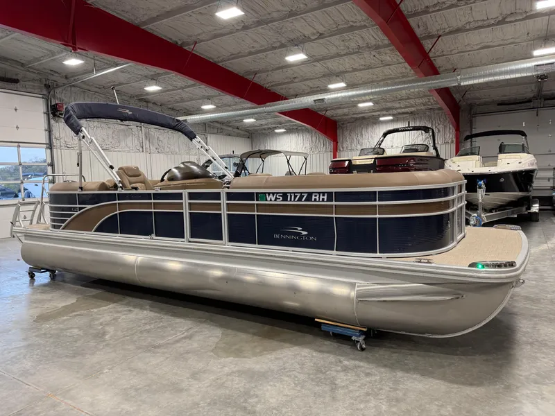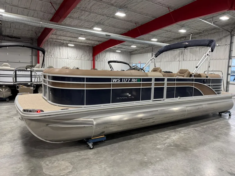 !!! Only 233 Hours !!! 200 HP Four-Stroke Outboard !!! This 25 foot Bennington Tritoon is equipped with a Yamaha 200 hp four stroke outboard, power assist steering, lighting package, lifting strakes, Bimini Top, full cover, Bluetooth stereo, filler seats, there is a second filler seat that the vinyl color doesn't not match-previous owner Bought extra online, elevated Helm, ski locker, ski tow bar, seagrass flooring, and more. Price does not include Trailer but we have used if available for $3900 or new for $5900. Financing and delivery are available. We accept trades.