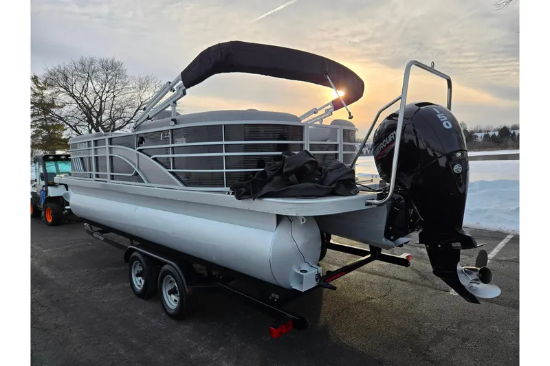 2021 Bennington L 22 Quad Bench, a stunning used pontoon boat that perfectly blends style and performance. With an overall length of 23.75 feet, this unit comes with:150 hp Mercury L 4S with Only 90 Hours, 3 Blade SS Prop, Custom Cover, Ski/Tow Bar, Cocktail Table, In Floor Storage, Swim deck w/ integrated ladder, Trailer, and more!